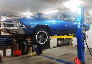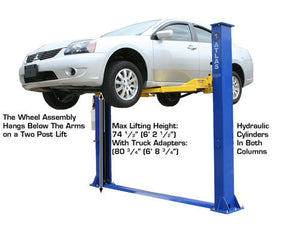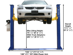 The Atlas® 9KBP is a baseplate two-post lift designed for low ceiling garages. The total column height of 111 ½” (9 feet 3 ½ inches) allows this lift to be installed in almost any professional or home garage with a ceiling as low as 9 feet 6 inches.