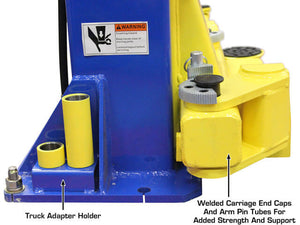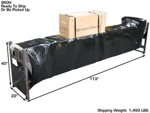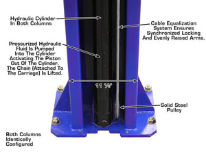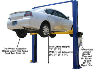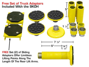 The Atlas® 9KOH includes: a complete set of solid peg type truck adapters, mounting hardware, a set of sliding lift point adapters, and a 220 volt single phase power unit that can be mounted on either side of the lift. (The power unit column must be on the correct side).