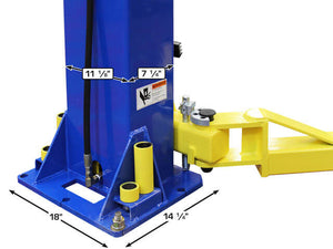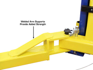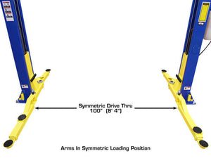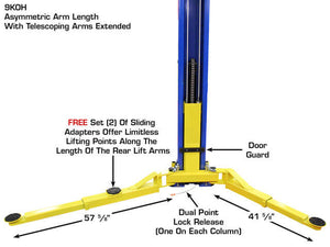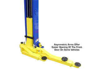 The Atlas® 9KOH has symmetric columns and specially designed arms that can be set in either the symmetric or asymmetric position. The asymmetric/symmetric arm design offers an extremely low lift pad position on the EZ-metric lift arm configuration. This low pad height will allow the operator to position the lift arms under most small cars (with low pick up points) and heavier pick up trucks.