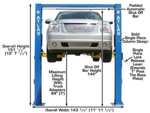 The Atlas OHX10000X commercial grade two-post lift is the perfect choice for fleet, general repair and tire shops that demand the highest quality at the absolute best price. The Atlas® OHX10000X is WIDER and TALLER than most two-post lifts. From Smart Cars to 1-ton diesel dually to vans or "ladder truck". This lift requires a 13' ceiling height.