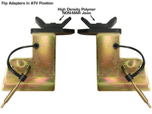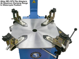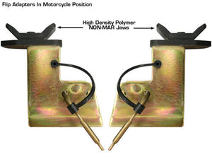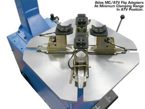 The handy Atlas® Motorcycle/ATV Flip Adapters are secured to the existing steel jaws (on the turntable) with a locking pin that ensures a positive clamping action by the jaws.