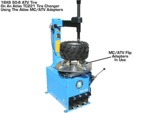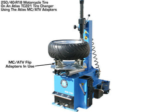 The Atlas® Motorcycle/ATV Flip Adapters are designed to enlarge or decrease the clamping range of the Atlas® TC221, TC229, and TC289 tire changers. The Atlas® Motorcycle/ATV Flip Adapters are installed over the existing turntable clamping jaws to INCREASE the EXTERNAL clamping range of the turntable jaws for motorcycle wheels. The adapters can also be flipped around to DECREASE the EXTERNAL clamping range of the turntable for ATV wheels.