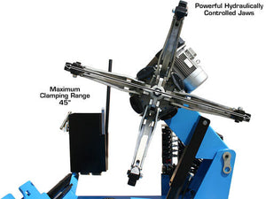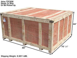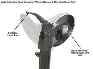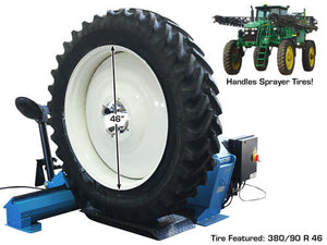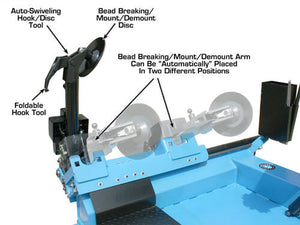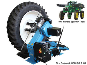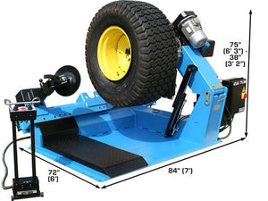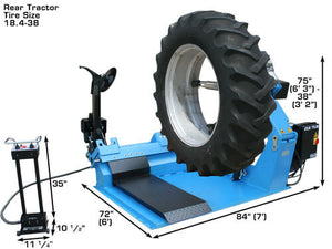 The Atlas® TTC-306 is very similar to the Atlas® TTC-303, but with several additional features. The remote control allows the operator to move the bead breaker disc and mount/demount head automatically. This Super Duty Atlas® truck tire changer is designed and engineered to handle rim sizes from 14 inches to 56 inches and tire diameters in excess of over 97 inches. The Atlas® TTC-306 Truck Tire Changer can easily accommodate tires with a maximum width of up to 53 inches. This is the perfect tire changer for those companies that need the extra capacity to change large agricultural and “earthmover” tires.