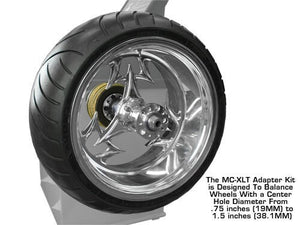 The Atlas® MC-XLT adapter kit will allow your Atlas® (passenger and light truck) computer wheel balancer to balance a variety of motorcycle wheels with hub assemblies up to 11 inches wide with this Atlas® MC-XLT Kit and up to 13.75 inches wide* with the XLT Extension Nut. The Atlas® MC-XLT adapter kit quickly installs in all Atlas® (passenger and light truck) computer wheel balancers. A simple sixty second procedure will allow you to change from the original (car-light truck) shaft that came with your balancer to the MC-XLT adapter kit. The MC adapter kit is designed to balance wheels with a center hole diameter from .75 inches (19MM) to 1.5 inches (38.1MM)