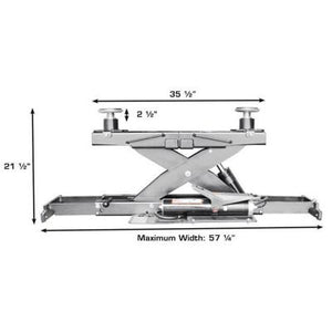 The Atlas Platinum PVL14KOF-EXT is a four (4) commercial grade open front alignment lift is built for years of dependable service for the busiest of automotive shops. The longer runway length can accommodate those customers who have the “Camera Tower Alignment System” and are required to “rollback” long wheelbase vehicles. In addition, the PVL14KOF-EXT has no crossbeam in the front of the lift making all the under-car operations even easier!