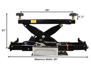 The Atlas® RJ-8000 is a heavy-duty rolling jack designed to lift and support 8,000 LB. The commercial grade RJ-8000 rolling jack can be used to raise the front or rear section of a vehicle, allowing the operator of a four post above ground lift to perform wheel and brake service. Most commercial shops buy two of these hydraulic rolling jacks, so that the entire vehicle can be supported in the air at the same time. The Atlas® RJ-8000 was specifically designed to work with the Atlas® PX-16A alignment scissor lift.