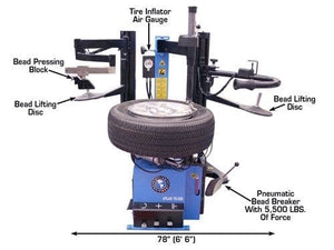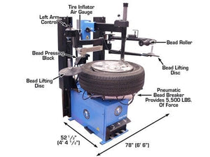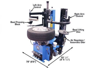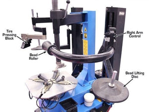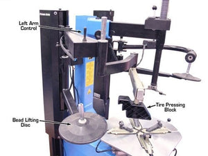 The Atlas® TC229DAA wheel clamp tire changer is the Atlas® TC229 wheel clamp tire changer that has been equipped with the pneumatic Atlas® LH assist arm plus the Atlas® RF assist arm that includes a bead roller and second bead lifting / pressing disc. The addition of the Dual Arm Assembly (DAA) to the Atlas® TC229 makes the Atlas® TC229DAA one of the most powerful wheel clamp tire changers in the marketplace.