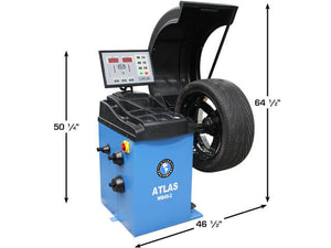 The Atlas WB49-2 represents the very latest generation of Atlas Wheel Balancer. Boasting Automatic 2D Data Entry, the offset and diameter are entered automatically using the inner measuring gauge, and the all-new ‘monitor-style’ large LED display and new design chassis give the balancer a far more practical and aesthetically improved design.