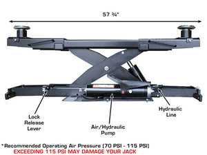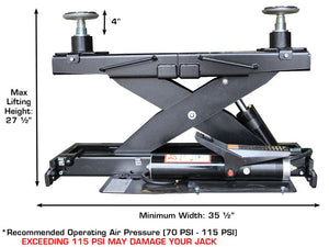 Important: The Atlas Platinum RJ7000 is designed and engineered to operate on "delivered" air pressure of between 70-115 PSI. If you exceed 115 PSI, you may damage your jack.