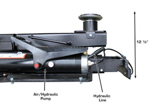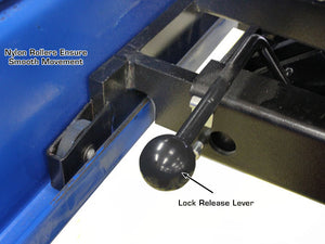 The Atlas Platinum ALI CERTIFIED RJ7000 air/hydraulic rolling jack has telescoping arms that can be extended over the runways of the four-post lift. The lift pads at the end of these arms can be positioned under the LIFTING POINTS that are located over the runways of the four-post lift. The Atlas Platinum RJ7000 is equipped with expandable rail supports which adjust to fit many different four post above ground lifts. These supports have a unique roller system that allows the rolling hydraulic jack to glide easily under the entire length of the vehicle.
