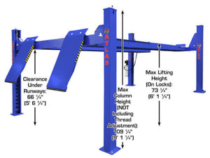 | Clearance Between Columns | Rear: 116 3/8" (9' 8 3/8") Front: 117 3/8" (9' 9 3/8") |