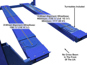 The Atlas Platinum PVL14KOF-EXT is a four (4) commercial grade open front alignment lift is built for years of dependable service for the busiest of automotive shops. The longer runway length can accommodate those customers who have the “Camera Tower Alignment System” and are required to “rollback” long wheelbase vehicles. In addition, the PVL14KOF-EXT has no crossbeam in the front of the lift making all the under-car operations even easier!
