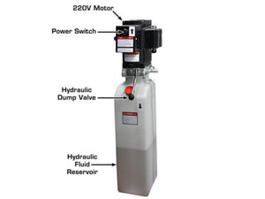 This product features an ALLY Hydraulic AL3000 Power Unit. This premium power unit is certified by MET Laboratories Inc. for electrical compliance in the United States and Canada. Extra heavy-duty armatures and more motor windings with increased silver metal included in the wires and connections create far less heat generation and allow ALLY Hydraulic power units to maintain constant torque through the lifting process. This power unit also carries an industry leading two-year limited warranty.