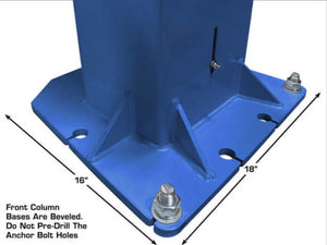 | Base of Column | Rear: 9" X 10 3/8" Front: 18" X 16" |