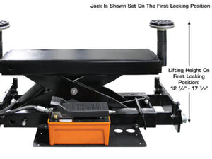 The Atlas® RJ6BK (Air/Hydraulic) is a heavy-duty rolling jack designed to lift and support 6,000 LB. The commercial grade RJ6BK (Air/Hydraulic) rolling jack can be used to raise the front or rear portion of a vehicle; allowing the operator of a four post above ground lift to perform wheel and brake service. Most commercial shops buy two of these hydraulic rolling jacks, so that the entire vehicle can be supported in the air at the same time.