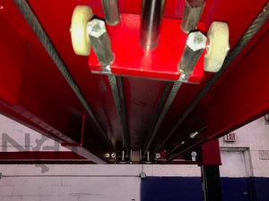 The Triumph Longer and Taller, Service Storage 4 Post Auto Lift NOS9000-XLT has boxed-steel columns that create incredible strength that eliminate twisting and bending. Safety first 5/8″ thick, 12″ x 12″ baseplates that better support loads on different floor surfaces and finishes. Surrounded by exterior steel sleeves that retain solid capture of the lift columns. Your vehicle will be safe and secure, supported at all times. Also tipping is decreased by cradling columns with steel sleeves that interlock. Lift includes Aluminum Approach Ramps, Casters, Drip Trays, Jack Plate with oil drain.