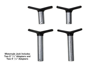 The Atlas® HT-ACL Motorcycle Jack is a lightweight scissor jack that fits nicely under most motorcycle and ATV frames. The Atlas® HT-ACL Motorcycle Jack works well with any elevated motorcycle lift or works well just operating from floor level. The Atlas® HT-ACL Motorcycle Jack includes two 2 ¼" adapters and two 4 ¼" adapters. Wheel service is made easy with the addition of a Atlas® HT-ACL Motorcycle scissor jack.