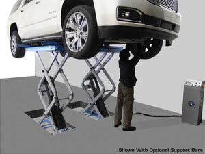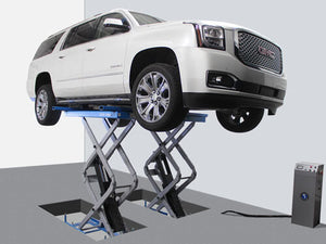 The Atlas® FM9SL 9,000 lb. flush mounted scissor lift is the perfect choice for those service facilities that need to maximize the number of vehicle lifts per service area square foot. If you like the “clean floor look” for your service department (no above ground lifts), then the Atlas® flush mounted scissor lift offers the perfect alternative. Unlike “old school in-ground” lifts, the flush mounted lift requires minimal excavation, and the electric/hydraulic power unit is easily accessed during periodic maintenance.