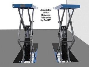 The flush mounted platforms offer no “above ground” obstruction and the platforms can be “driven over” from any direction so that a vehicle may be properly positioned in the tightest of spaces. The Atlas® FM9SL has both front and rear platform extensions that can be used when lifting a long wheelbase pick-up truck.