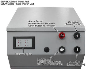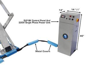 The Atlas® SLP-9K full rise scissor lift combines an extremely low lift platform height and a 78-inch full rise scissor jack system. The SLP-9K is the perfect above ground lift for customers with ceiling height restrictions and the need for enough lift to raise pick-up trucks. This Atlas® full rise scissor lift is also perfect for service shops that want to avoid the cluttered look of dozens of vertical lift columns.