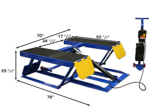 The Atlas® LR-06P portable 6,000 lb. low rise lift is the perfect addition to any garage that needs a quick sure fire method to raise a car to perform wheel service. The Atlas® LR-06P low rise lift has a rubber top lifting surface and a set of four high density rubber blocks that help to protect the lifting points of most vehicles.