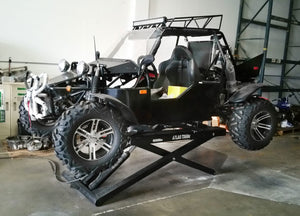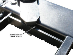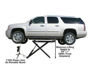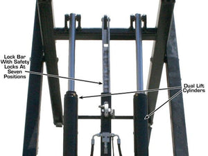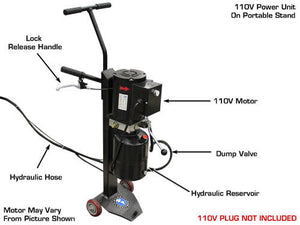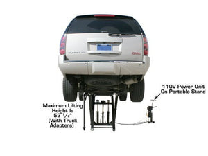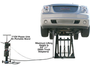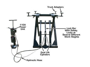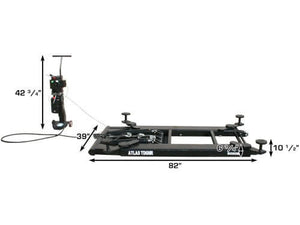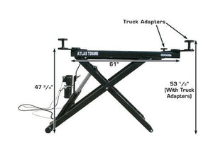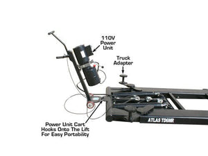 The Atlas® TD6MR is a portable mid-rise lift with several different locking positions. It is a popular choice for wheel service and body shops. There is also room for some underbody work. Atlas® TD6MR has been thoroughly tested to meet Industry standards. The Atlas® TD6MR mid-rise lift is powered by a 110-volt power unit that is mounted on a movable cart. The power unit can be remotely located around the lift for maximum efficiency. This cart is also used to move the Atlas® TD6MR on a smooth surface. The lift can easily be rolled from an inside work bay to an outside concrete apron work area.