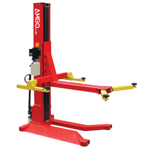 The AMGO SML-7 portable single post lift is the perfect choice for the commercial service shop or the Mr. Homeowner who does not want to tie up a bay space with a permanently mounted above ground lift. This portable vehicle lift allows the operator to walk under the vehicle or move around the vehicle to perform wheel service. When the AMGO SML-7 is not in use, it may be rolled out of the way into a corner. The AMGO SML-7 also has a built-in ramp allowing vehicles to drive over it, further maximizing garage space.