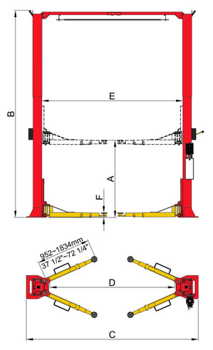 AMGO OH-12 2-post auto lift is developed by AMGO. With 3-stage arms that will work for long and short wheelbase trucks. And heavy-duty construction, self-lubricating bushings, sliders and high-quality parts to make the lifts with almost no maintenance required. The warranty time of the lifts is 5-years for steel construction, 3 years for hydraulic parts, and 2 years for electrical components.