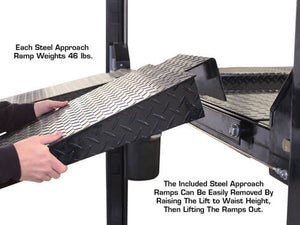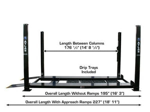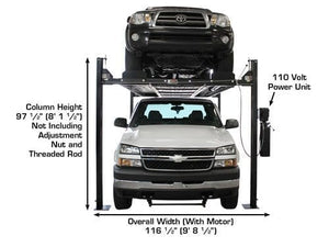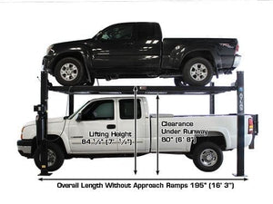 The Atlas® Garage Pro 8,000 EXT-L in an extra-long and slightly wider Service / Storage Lift. This lift is 20 inches longer (wheelbase) and 3 inches wider than the Atlas® Garage Pro 8000 EXT. Or to compare to the original, this lift is 20 inches longer (wheelbase), 3 inches wider, and 14 inches taller than the Atlas® Garage Pro 8000! The extra runway length will accommodate almost all of the longer wheelbase pickup trucks, except dually trucks. Check out the Atlas® Garage Pro 9000 or the Atlas® 409-HP if you need a portable lift for your dually!