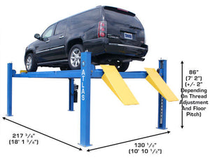 The Atlas® 414A (14,000 LB. capacity alignment lift) incorporates many structural and cosmetic features that are found on lifts costing thousands of dollars more money. The Atlas® 414A is tested to ensure that this alignment lift system will perform flawlessly at its rated capacities. The Atlas® 414A has been manufactured to the same exacting specifications for many years.