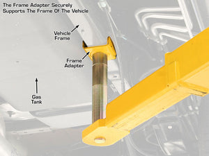 The optional frame adapter set (2 pieces) is available for most of our Atlas® (branded) line of 2-post lifts. These special saddle adapters (used on the two rear arms in place of the standard round lift pads) are designed specifically to provide a secure lifting surface for those trucks that have the gas tank mounted VERY CLOSE to the frame. Many trucks and even some SUVs have the gas tank located so close to the frame, that makes it almost impossible for the standard lift pad to have full contact with the frame. This saddle adapter set allows the frame to "sit inside the saddles" and provide a superior lifting surface. This frame adapter set works well with certain Ford ®, Chevy ®, and GMC ® pickups and SUVs.