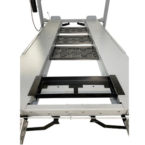 Optional SJ-35 Hydraulic Center Slide Jack available. This sliding hydraulic vehicle jack is the perfect choice for the owner of the Triumph NSS8 Series 4-Post car lift. The Triumph SJ-35 Sliding Jack has telescoping arms that can be extended over the runways of the four-post lift. The lift pads at the end of these arms can be positioned under the LIFTING POINTS (that are located over the runways of the four-post lift) of the vehicle allowing the operator to access many more LIFTING POINTS than just using the jack tray.