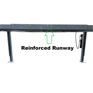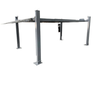 This Lift is packaged in 2 pieces allowing it to be unloaded with lift gate service at your location. This means you do not need a forklift or heavy machinery to unload from the delivery truck. The runways and crossrails are reinforced to ensure strength even when assembled in multiple pieces. 2 people can easily unpackage and assemble without any heavy machinery.